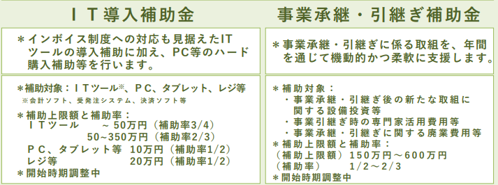 IT導入補助金、事業承継・引継ぎ補助金