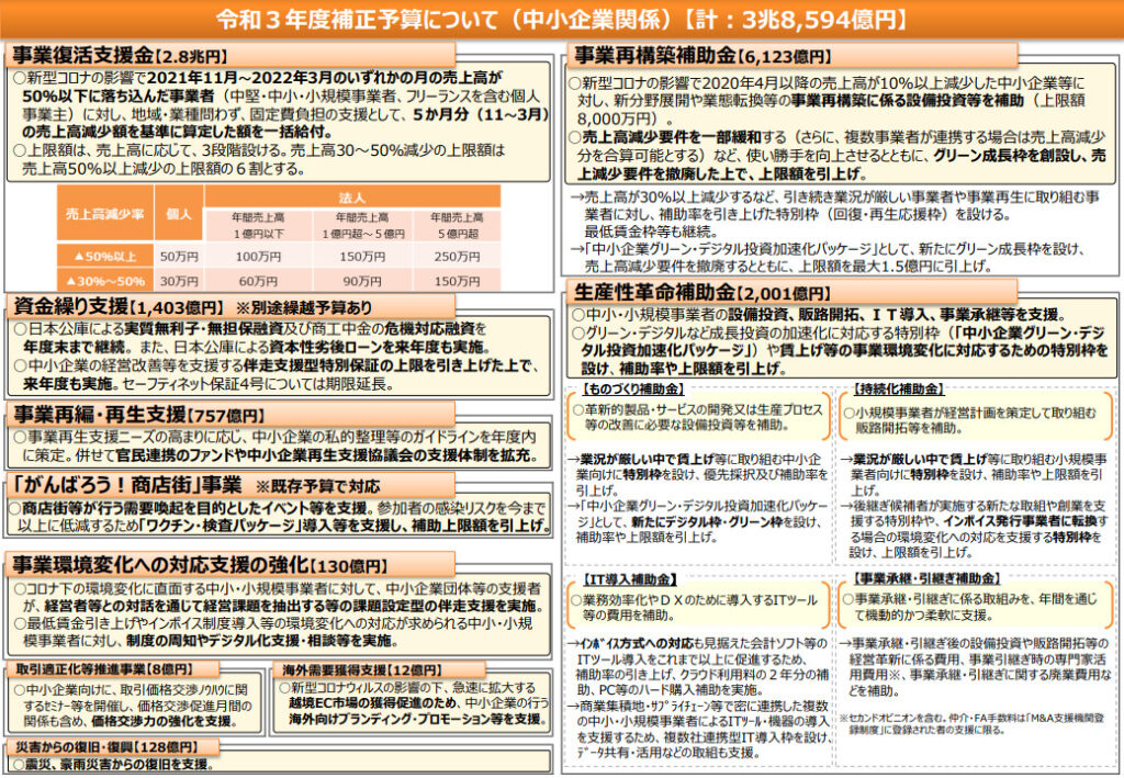 2022年の支援制度や補助金・助成金・融資の見通しが分かるPR資料が、中小企業庁から公開されています。内容を順次チェックしてみましょう。