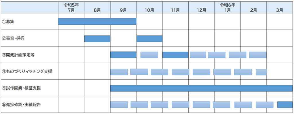 多摩ものづくりスタートアップ起業家育成事業の実施スケジュール