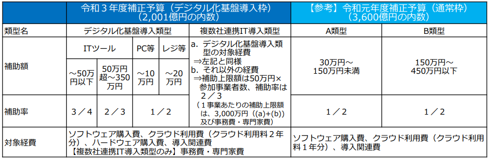 会計ソフト、受発注ソフト、決済ソフト、ECソフトに補助対象を特化し、補助率を引き上げ