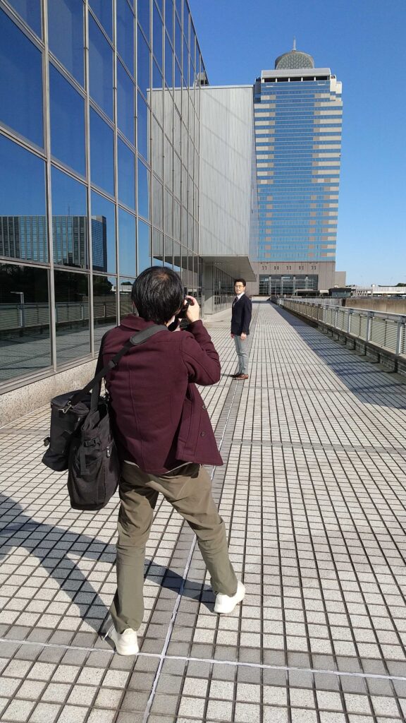 撮影は、石井先生の屋号にもなっている幕張のビル群とレンタル会議室で。ビル群を背景としての撮影、良いですね!窓ガラスの反射もあってとても綺麗に撮れていました。