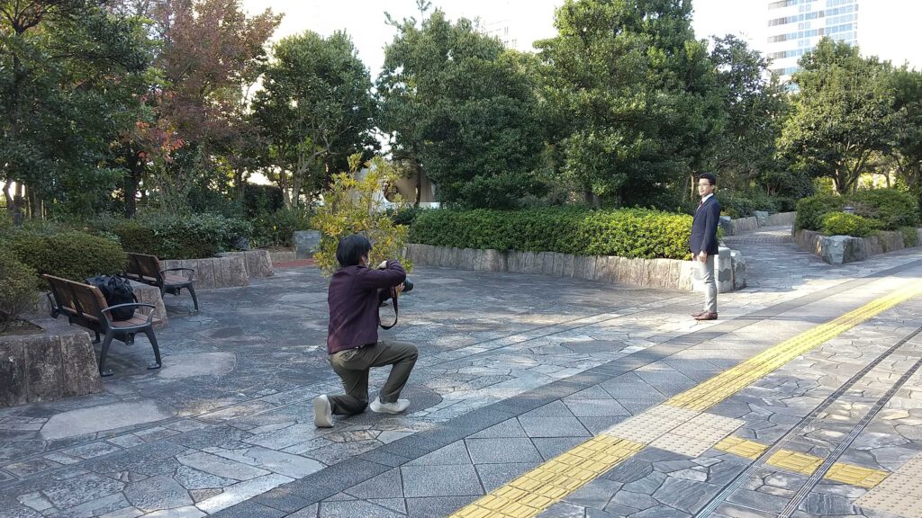 屋外での撮影が得意で、価格とサービスに満足できる写真を撮ってもらいました。撮影している様子を隠し撮りしたので、ちょっと紹介したいと思います。