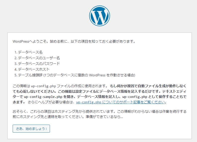 mv wordpress/* /var/www/htmlさて、Apacheを再起動してWordPressの画面が表示されれば準備完了です。