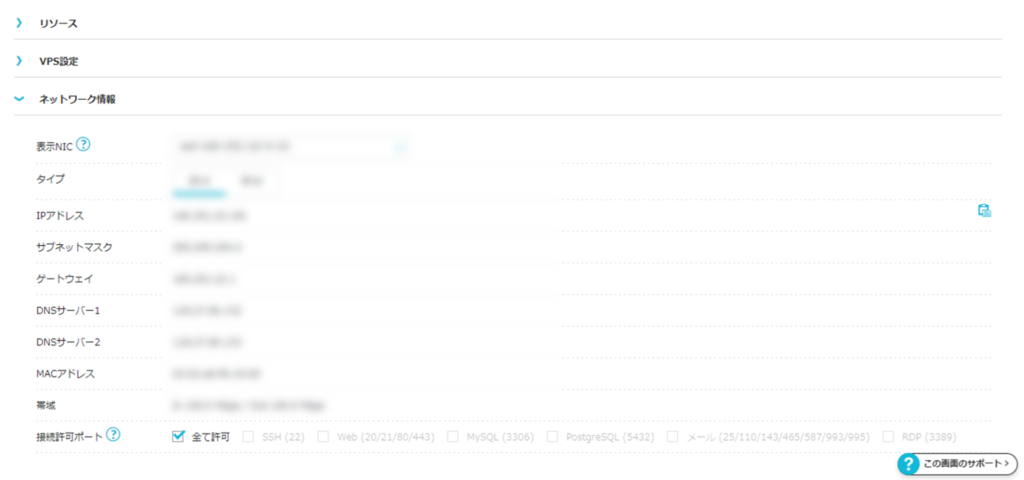 サーバー情報を開いて、IPアドレスを確認します。セキュリティの面から接続許可ポートは変更しておくのが望ましいですが、テスト環境ということでいったんそのままに。TeraTermなどのコンソールアプリを立ち上げてrootアカウントでログインできればOKです。