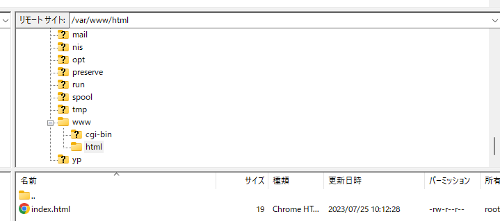 アクセスできたら、これでファイル作成も怖くない!viコマンドで挫折した自分も安心です。index.htmlをサクッと作って、/var/www/html/ に配置してみます。