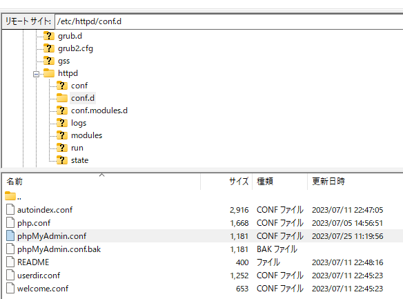 /etc/httpd/conf.d/phpMyAdmin.conf を編集します。念のため、現状のファイルは複製してバックアップを取っておきましょう。