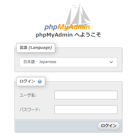 無事表示されたので、ログインして、WordPress用のテーブルを作っておきましょう。