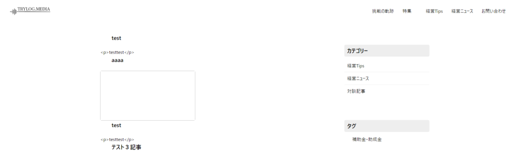 </aside>サイドメニュー領域にカテゴリ一覧とタグ一覧が表示されればOKです。