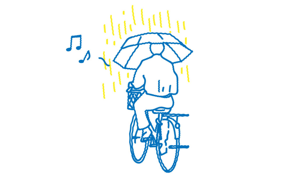 - 雨でも移動手段は自転車