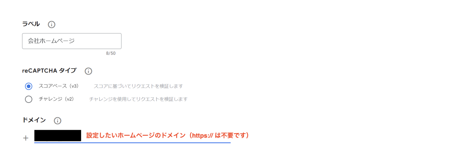 ドメイン:設定したいホームページのドメイン(https:// は不要です)
