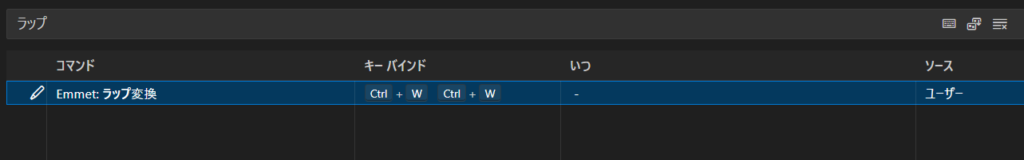 ➁「入力してキーバインド内を検索」のところに「wrap」または「ラップ」と入力