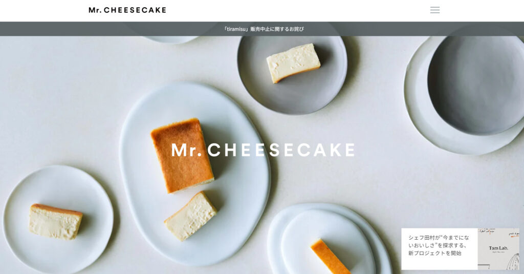 最初に紹介するのは、ブランディングや販売戦略の成功事例として参考にさせて頂いている、Mr.CHEESECAKEです。販売サイトはShopifyで制作されており、Microsoft ClarityやShopfyメルマガツールKlaviyoを導入している等、参考になる部分もありますね。