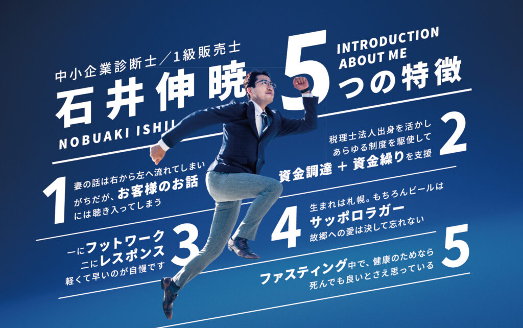 石井先生は、出版業界で営業経験などを積まれたのち、税理士事務所で資金調達・補助金や経営のコンサルティングを実施された後に独立されました。中小企業の資金繰り改善や資金調達・補助金申請支援を得意としており、経営者の「お金の悩み」を解決することに取り組まれています。