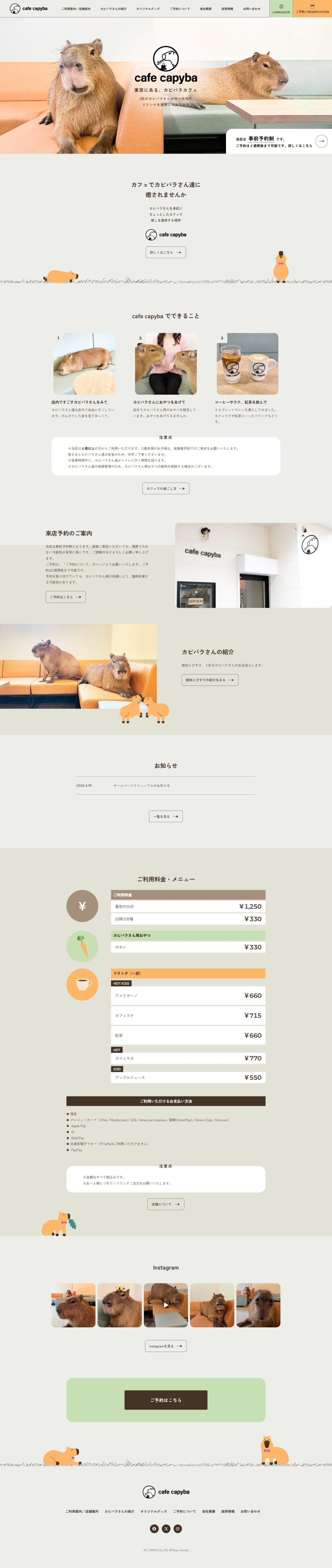 カピバラカフェの、コーポレートサイトを制作させて頂きました。
