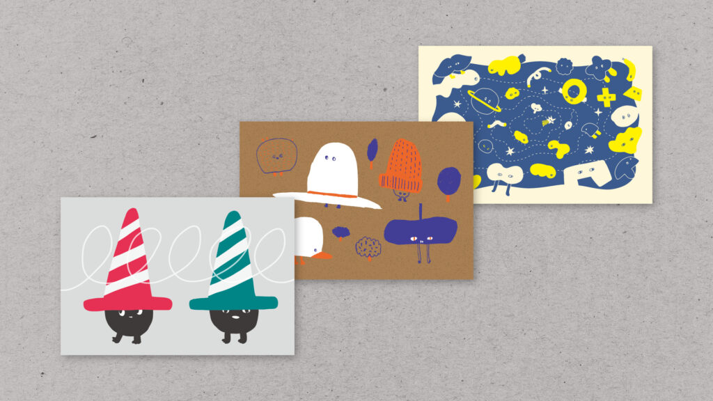 ポストカード「カラーコーン兄弟」「帽子たち」「TenCy宇宙モチーフ」