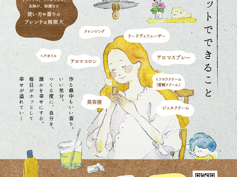 アロマテラピーの事業者様のアロマキットに同梱するリーフレットのデザインを担当しました。