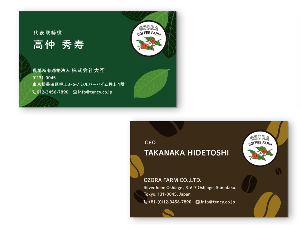 農地所有適格法人 株式会社大空様のコーポレートの名刺になります。