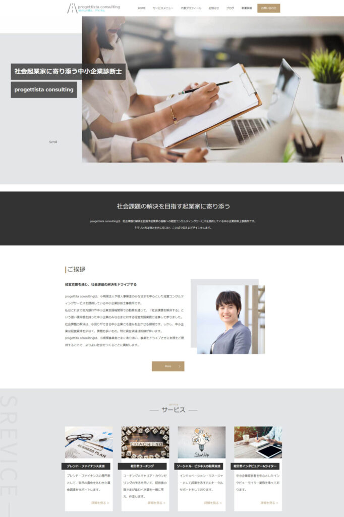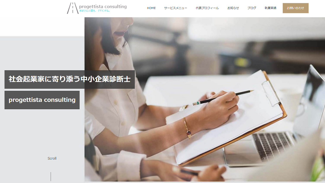 弊社もお仕事でご一緒させて頂いた経験もあります、『Progettista Consulting』中小企業診断士・ライター・コーチの米澤智子様のホームページを制作させて頂きました。