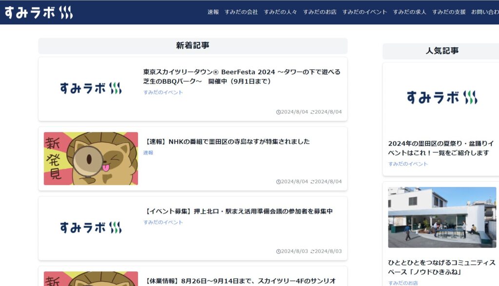 東京都墨田区のニュースやイベント情報を発信するローカルメディア「すみラボ」を制作しました。