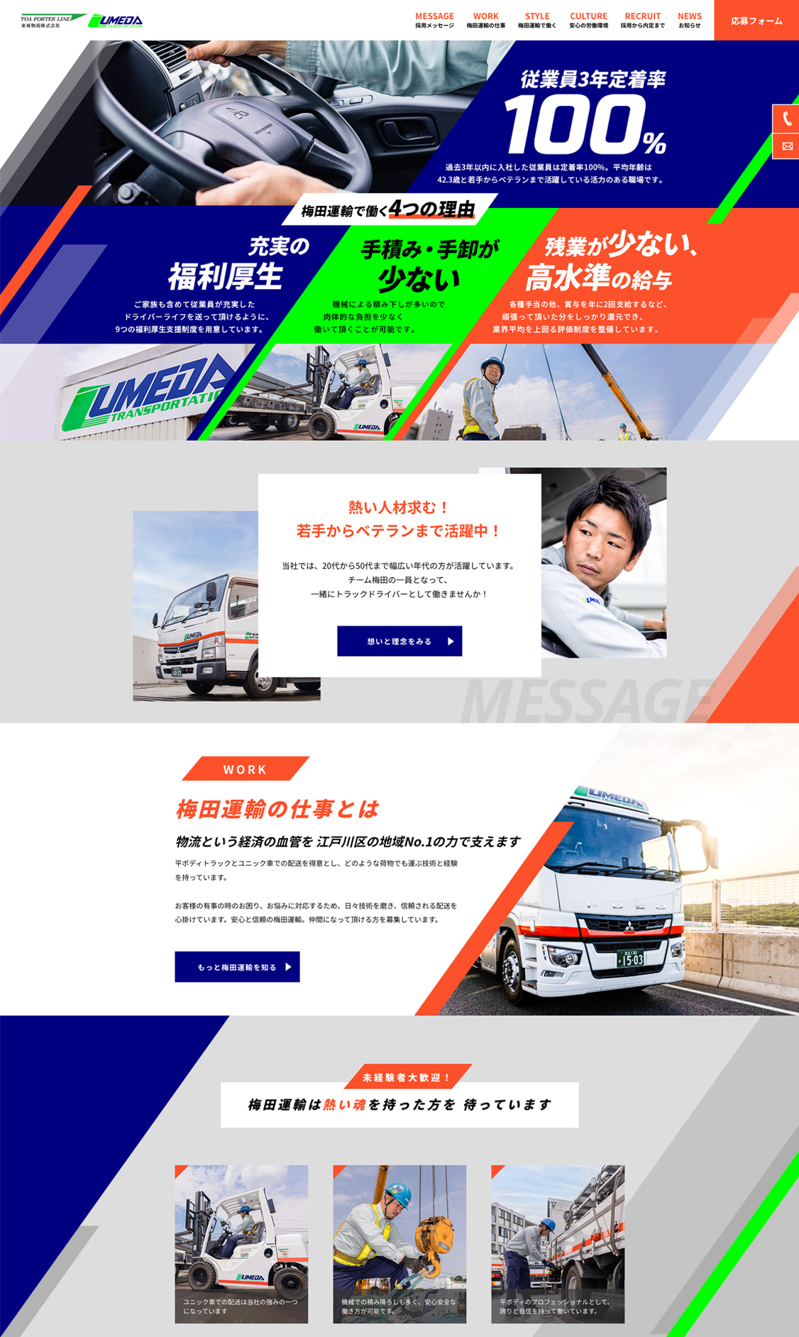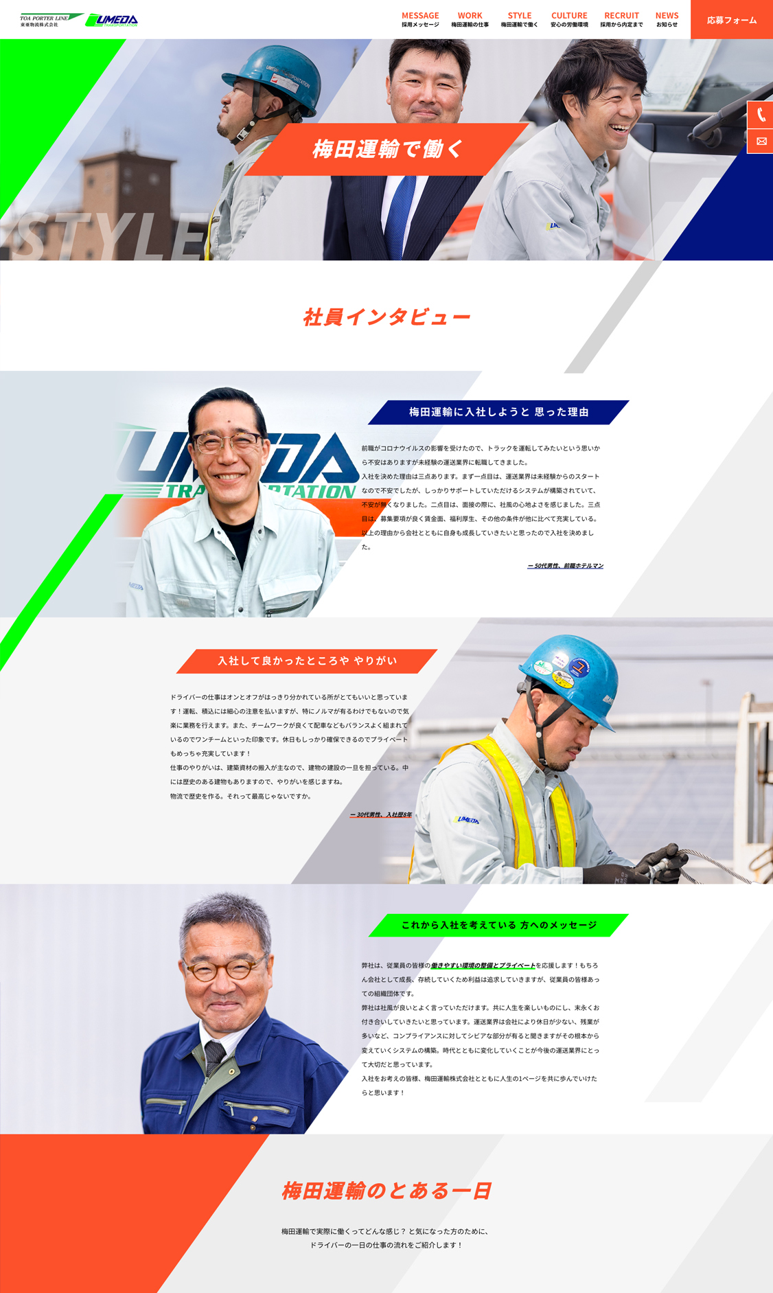 梅田運輸株式会社様の求人・採用サイトをデザインから制作までを実施しました。
