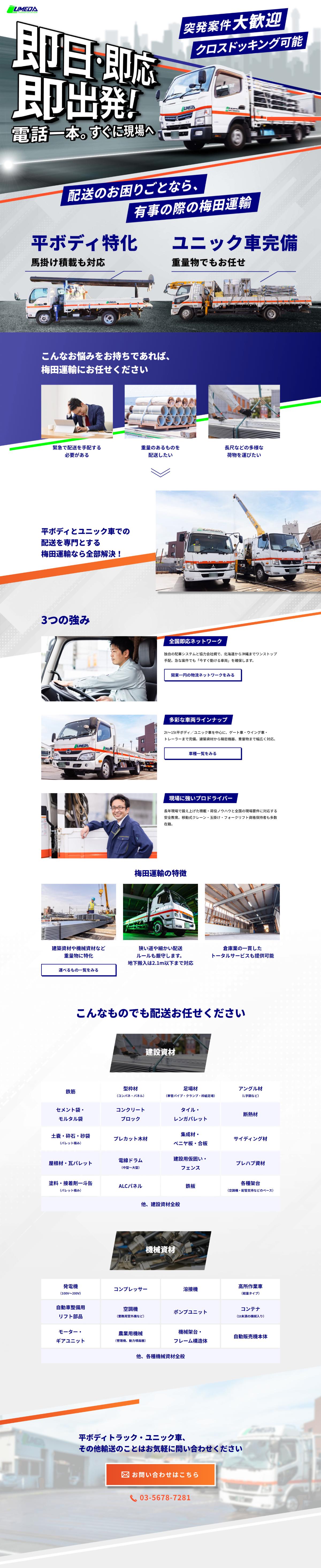梅田運輸株式会社様の集客目的ランディングページをデザインから制作までを実施しました。